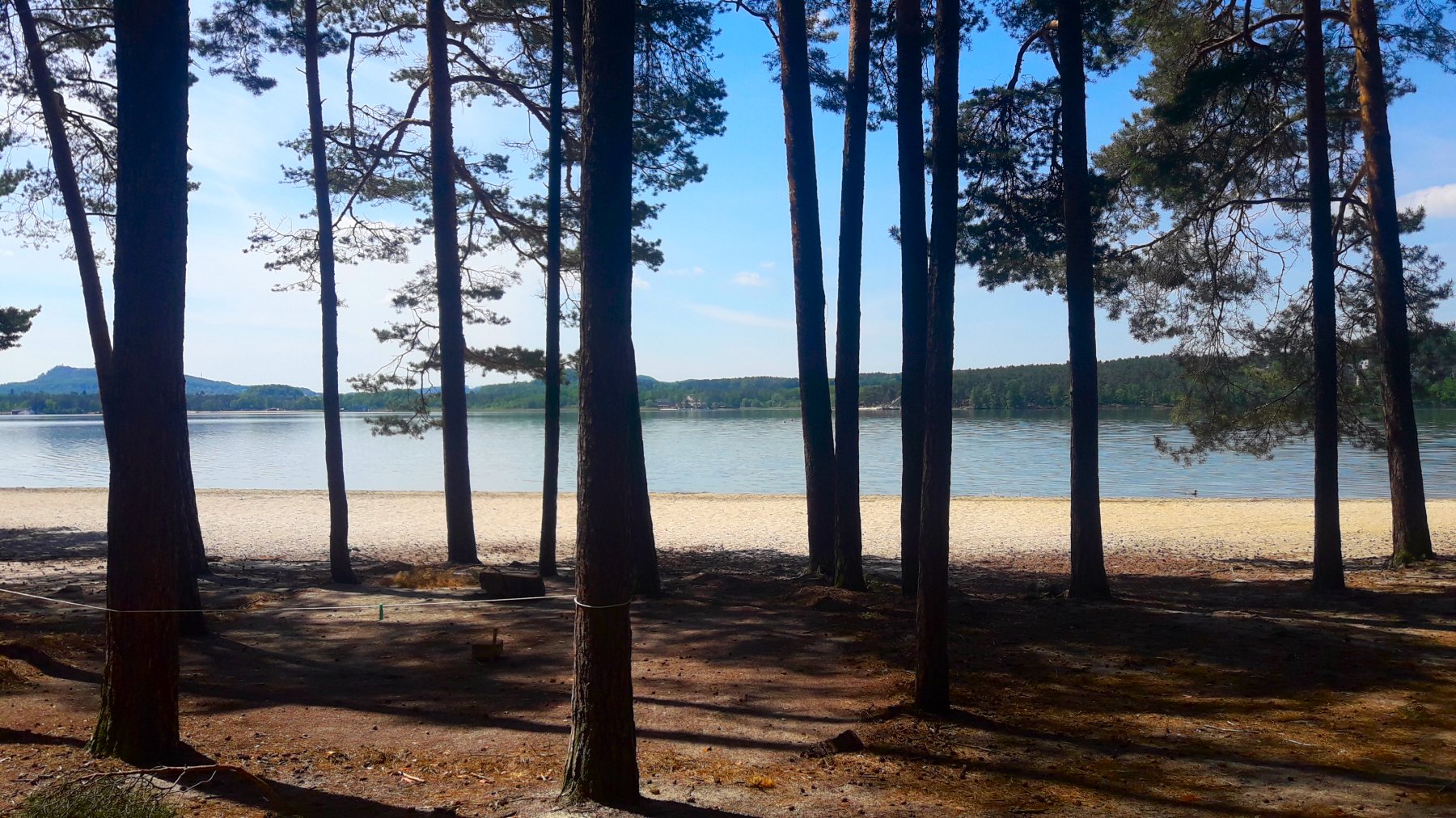 Der Hauptstrand von Staré Splavy ist der bekannteste und bestausgestattete Strandabschnitt des Máchasees. Er bietet weichen Sand, klares Wasser und zahlreiche Annehmlichkeiten wie Liegestühle, Strandbars und Spielbereiche für Kinder. Hier kann man schwimmen, sonnenbaden oder einfach die schöne Aussicht auf den See genießen.